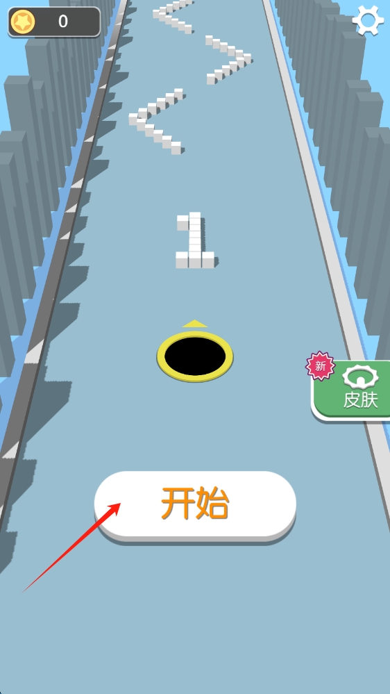 1、在游戏启动界面,点击开始,开启黑洞收集方块之旅,点击按钮开始当前游戏。