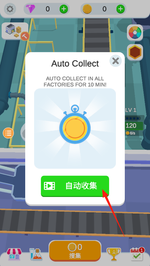 3、开启自动收集后10分钟内都不用手动操作,系统会帮你收好所有工厂的产品,这个功能特别适合挂机时使用,不过要注意左上角的资源数量别超过存储上限哦。