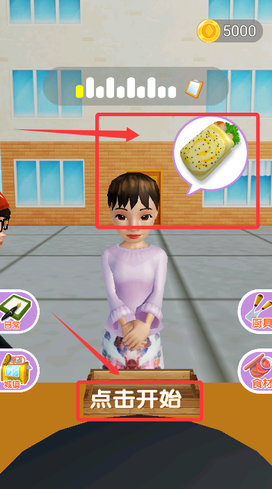 1、观察顾客头顶气泡的订单要求,轻触"开始制作"按钮进入烹饪环节。