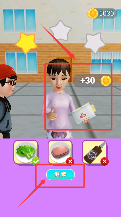 4、将成品装盒交给顾客,收获满意评价和金币,解锁更多食材配方。