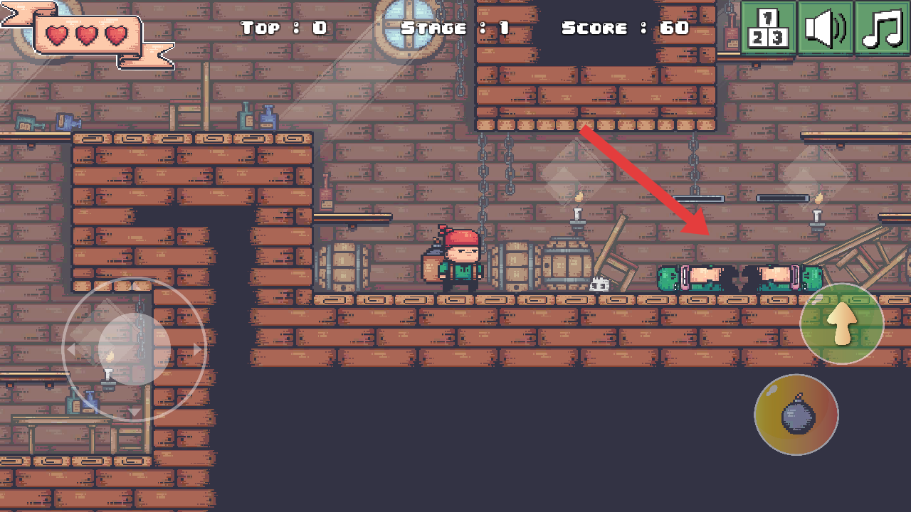 3、炸弹策略灭敌人:通过装弹、扔弹的方式消灭海盗,需规划炸弹放置与投掷位置,利用爆炸范围打击敌人,同时规避路障与陷阱,展现策略能力。
