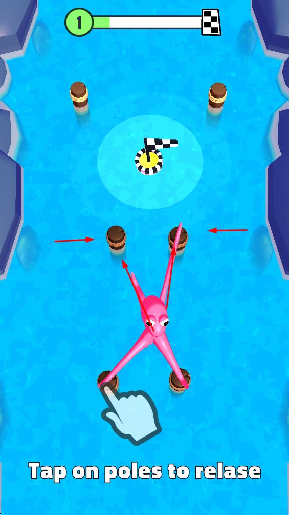 1、点击木桩释放章鱼触手,这是开启游戏进程的关键操作,确保顺利推进关卡。