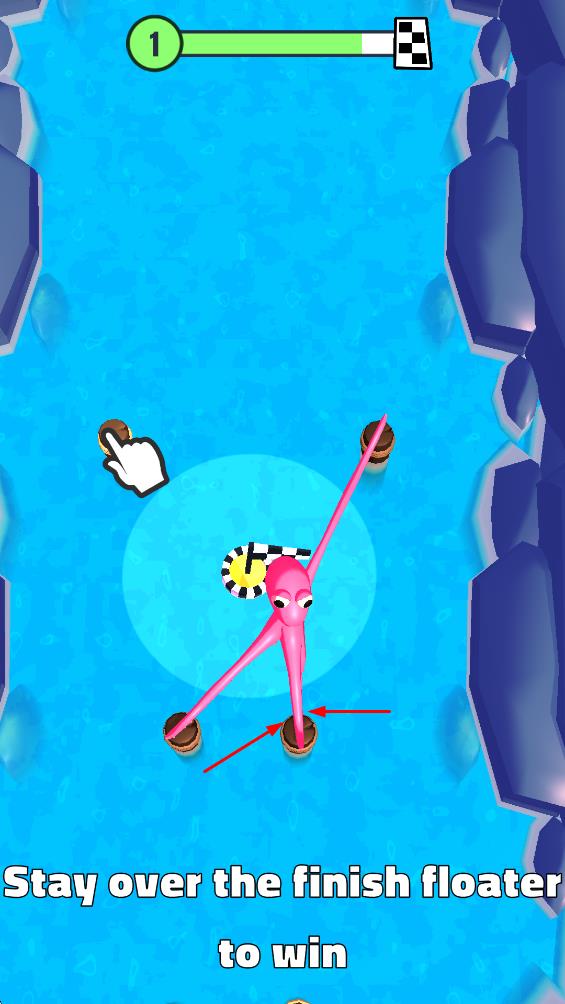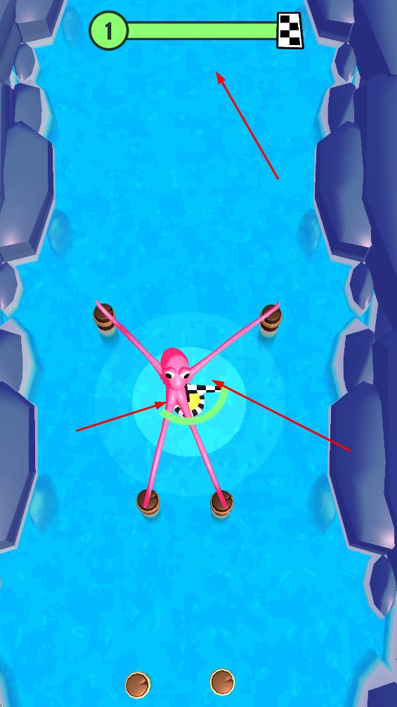 2、控制章鱼停在终点浮标上方,完成关卡挑战,为后续游戏进程奠定基础。