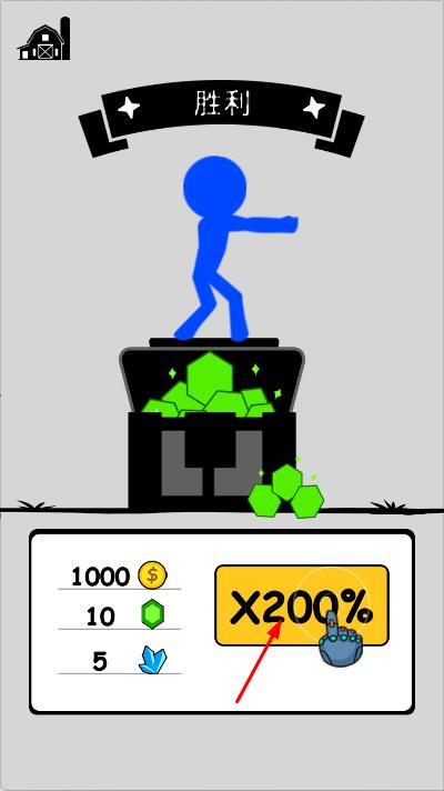 3、当成功淘汰关卡内所有敌人后,获得胜利显示奖励,点击奖励倍数按钮,利用获得的奖励提升角色属性,为下一次爬塔挑战做准备。
