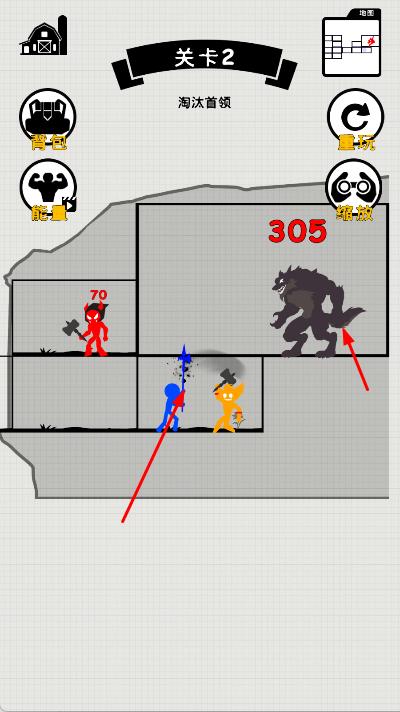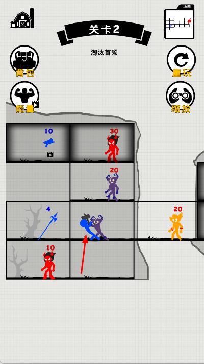 2、在攻击过程中,注意观察自己和敌人头上显示的数值,合理规划攻击顺序,优先攻击数值较低的敌人,以减少自身损失,淘汰关卡内所有敌人。