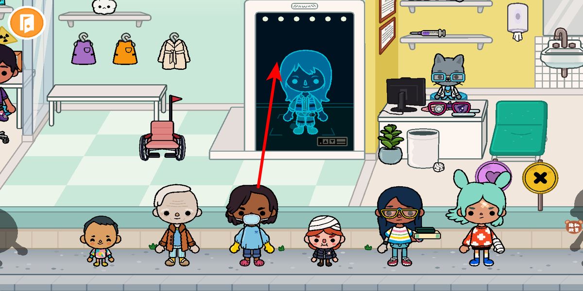 3、在医院的检查区域有X光机,让病人站到X光机前,点击X光机,就能为病人拍摄X光片,通过X光片可以查看病人内部的受伤情况,为后续的治疗提供准确的依据。