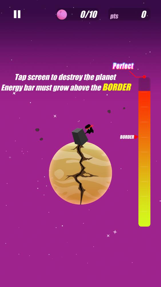 1、进入游戏后,点击屏幕上的星球即可消除,通过基础点击熟悉操作手感,感受击毁星球的即时反馈,开启消除挑战。