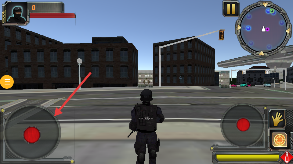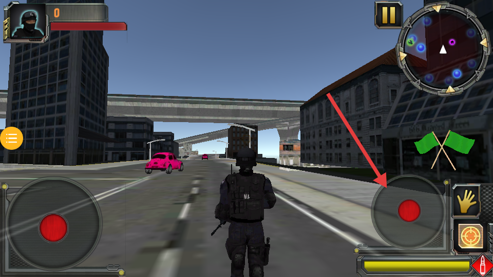 1、滑动屏幕控制角色移动,点击射击按钮精准消灭视野内敌人。