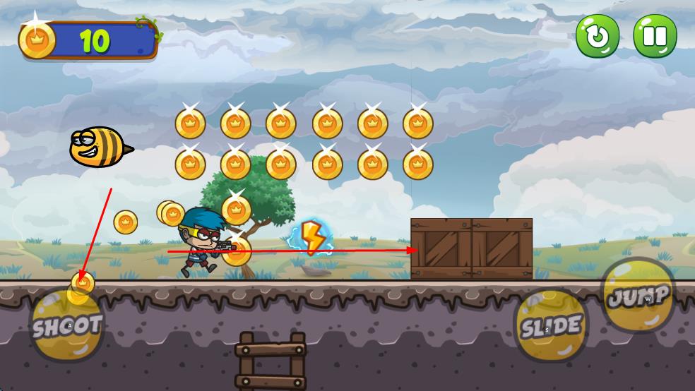 1、点击左下角SHOOT按钮发射子弹,击败沿途敌人或破坏障碍,这是获取金币与推进进程的关键操作。