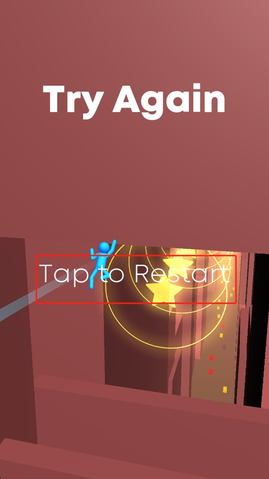 3、若挑战失败出现Try Again界面,及时点击Tap to Restart按钮重启关卡,重新规划攀爬路径继续挑战。