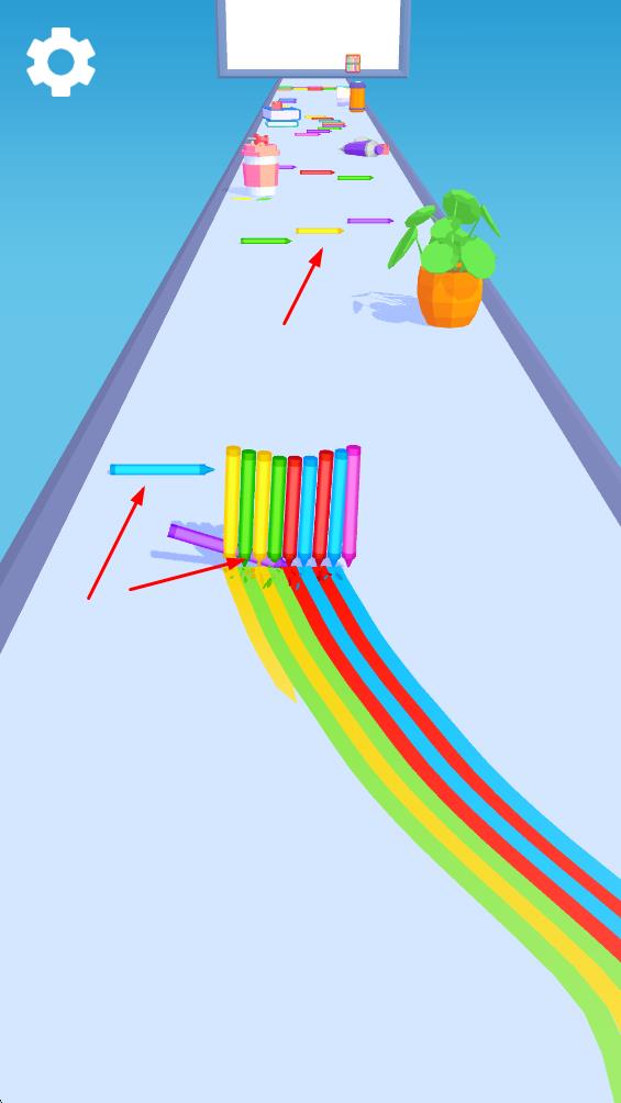 1、在跑道上左右移动收集彩色铅笔,增加铅笔数量,为后续绘画环节积累素材。