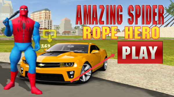 1、点击红色PLAY按钮,进入Amazing-Spider-Rope-Hero游戏,操控蜘蛛侠开启城市冒险,可借车辆或绳索能力探索场景,迎接任务挑战。