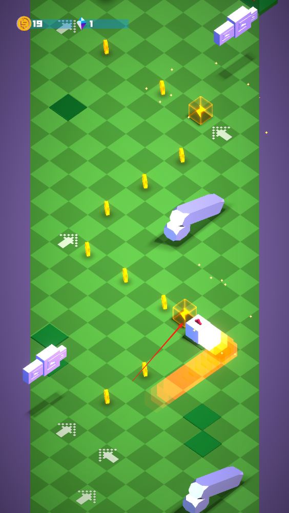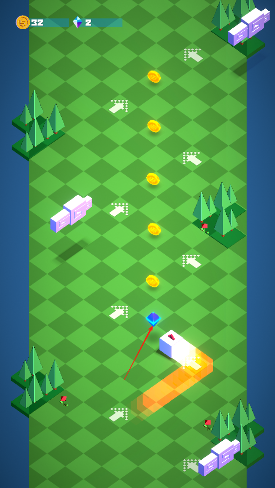 2、途中地上是有箭头的,可以在经过箭头的时候进行转向,可以收集到路上所有的金币和出现的钻石。