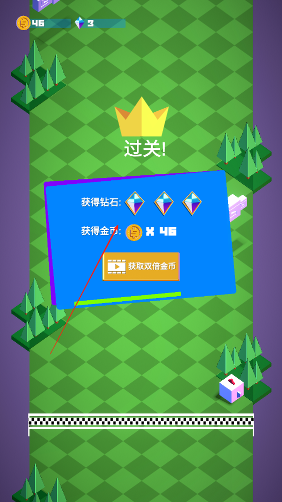 3、冲过终点后,会根据金币收集情况,和钻石收集情况进行屏风,收集到所有钻石才算三星通关。