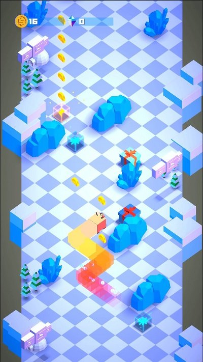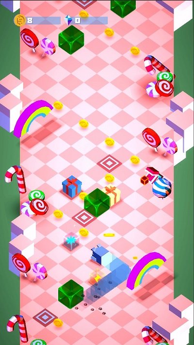 1、方块自动前进,只需要点击屏幕控制方块转向即可,前进过程中注意不要撞到障碍物,并且收集途中出现的金币。