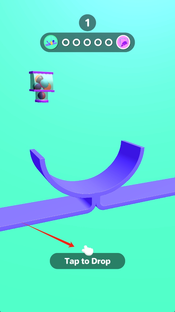 1、在物理下落休闲益智游戏启动界面,点击Tap-to-Drop,使球体下落,开启第1关挑战。