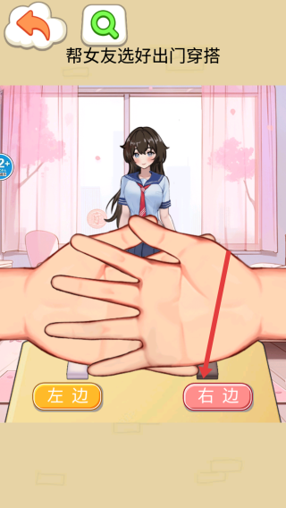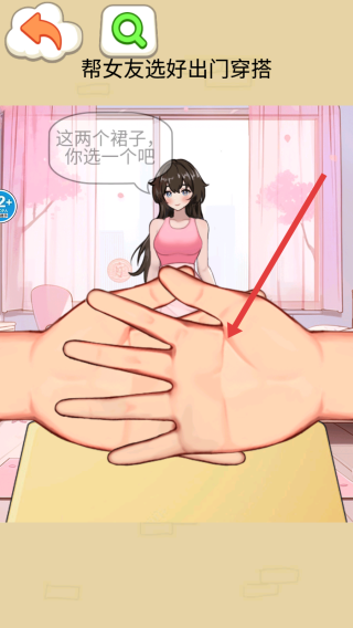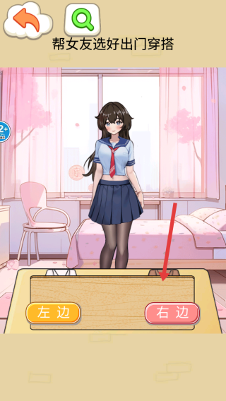 1、第一阶段需要按照女友的提示,思考搭配的元素,点击对应裙子区域无明确左右时,等后续选项。