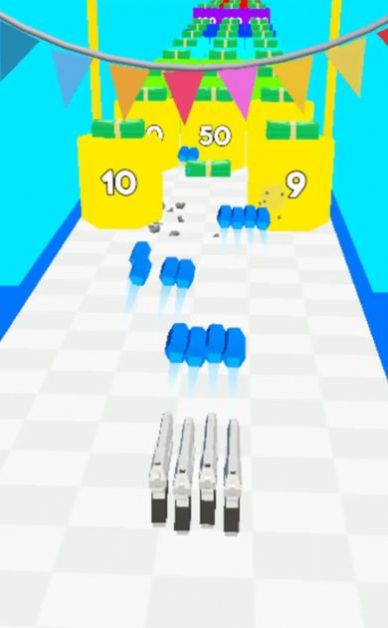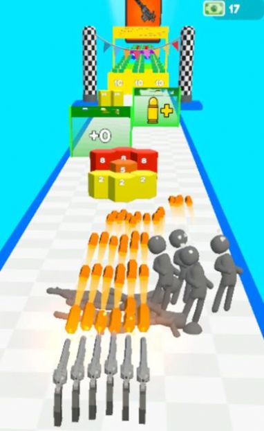 克隆枪是射击结合武器养成的游戏,玩家操控武器沿跑道前进,收集射速枪数量等增益卡强化武器,需策略选择增益方向,提升射击能力突破障碍,通关后结算奖励倍数,可选收下或跳过,在跑酷中体验火力成长的爽快感。