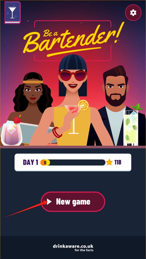 1、在Be-a-Bartender!界面,点击New-game,开启调酒师之旅,点击开始游戏。