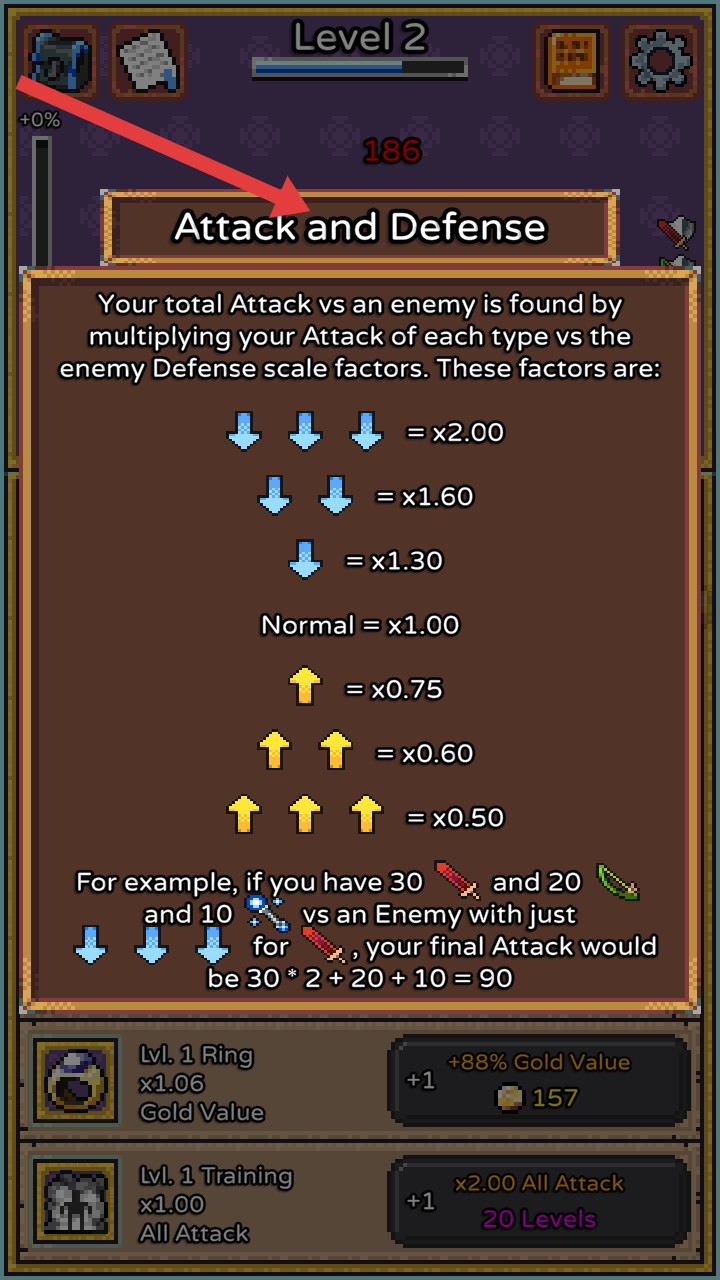 2、学习Attack and Defense规则,攻击伤害依敌我攻防类型的乘数计算,合理搭配攻击类型以提升输出。