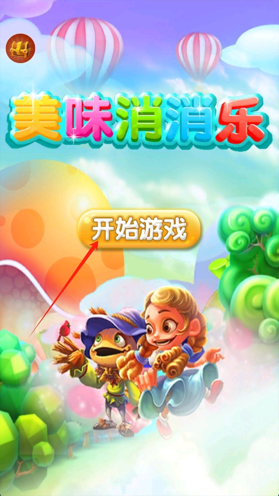 1、在美味消消乐游戏启动界面,点击开始游戏,开启消除之旅,点击开始游戏。