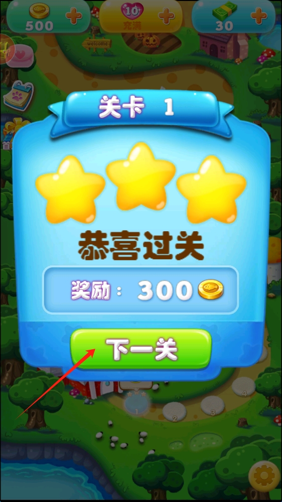 3、成功过关后,在关卡完成界面点击下一关,继续挑战后续关卡,获取更多金币和奖励。