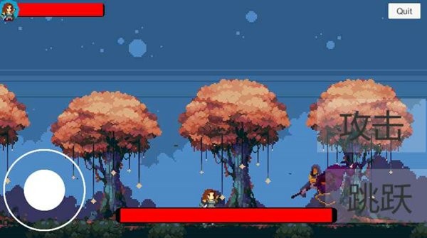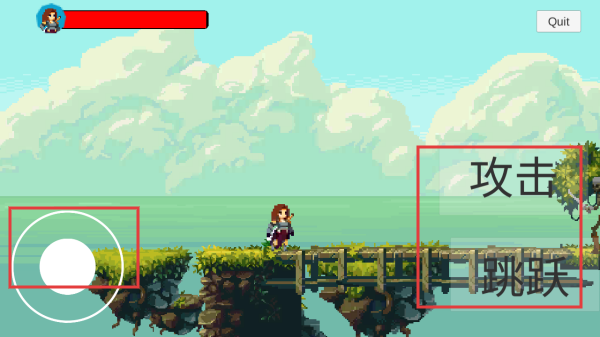 2、在游戏操作界面,左侧圆形按钮可控制角色移动方向,右侧攻击按钮可让角色发起攻击,跳跃按钮可使角色跳跃。