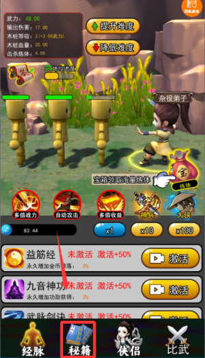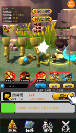 3、开放探索机制,达到特定战力后可深入江湖世界,解锁隐藏剧情与稀有道具,赋予玩家持续探索的动力。