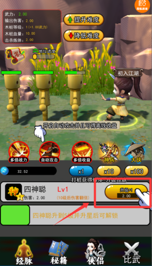 2、深度养成系统,通过积累金币与资源对英雄进行全方位强化,包括技能升级、装备进阶等,战力提升后能解锁更高难度的江湖挑战。