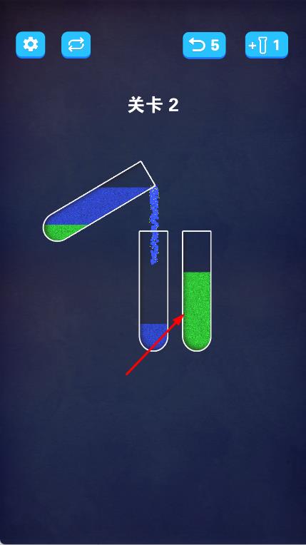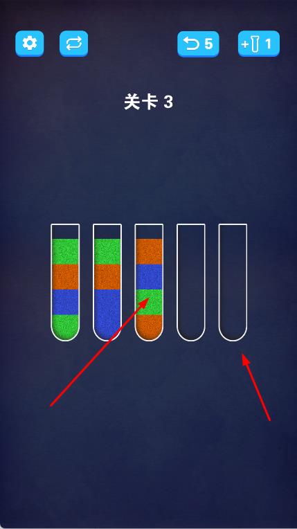 1、观察试管颜色分布:进入关卡后,仔细查看各试管内沙子的颜色与分层情况,明确不同颜色沙子的数量与位置,为分类规划做准备。