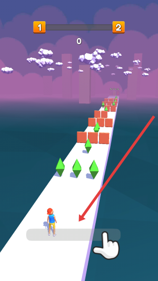 1、滑动屏幕操控角色起跑,沿跑道前进,躲避红色方块障碍,开启跑酷挑战,争取突破关卡。