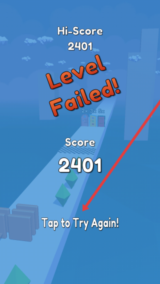 3、关卡失败后,点击Tap-to-Try-Again!,重新挑战,尝试突破障碍,刷新跑酷高分纪录。