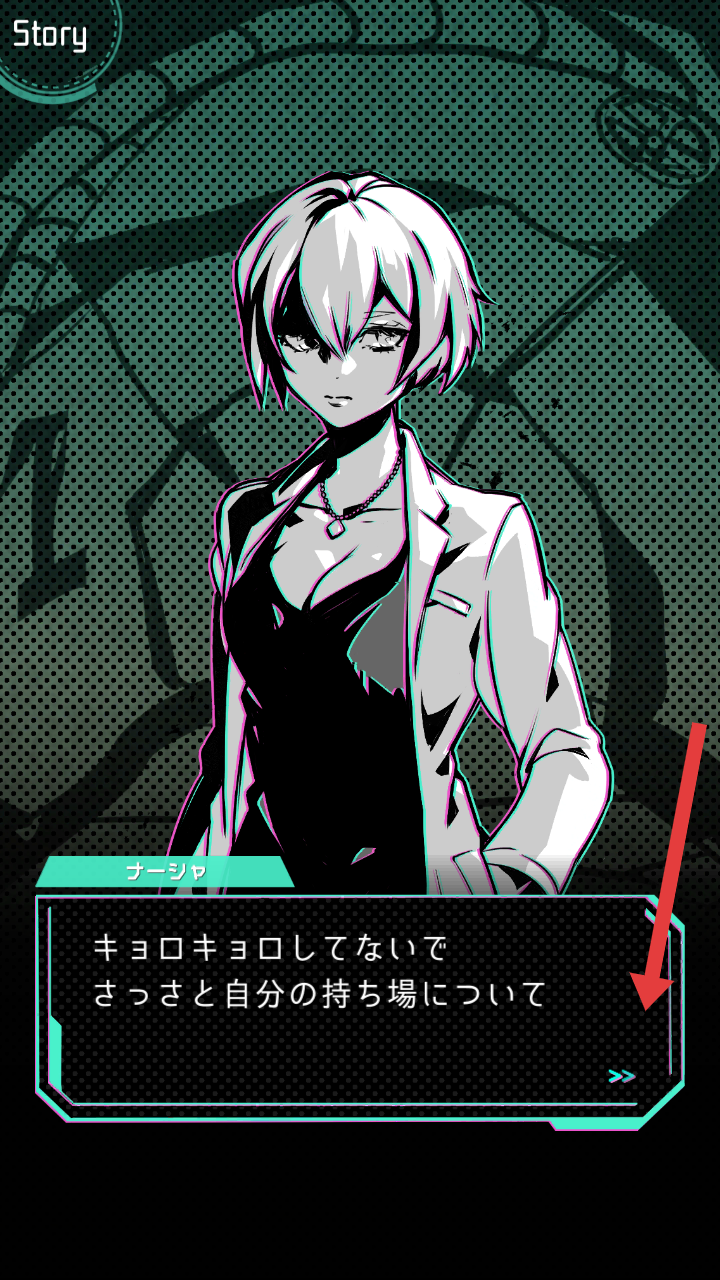 2、在游戏剧情的界面,点击对话框右下角的>>,推进ナーシャ的台词内容,解锁后续的故事。