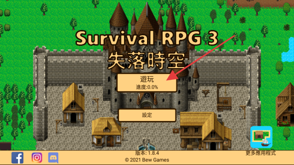 1、这是Survival RPG 3 失落時空游戏的启动界面,点击遊玩按钮,即可开始游戏,开启你的冒险之旅。