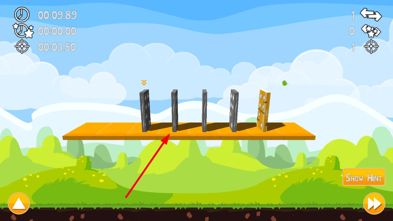 3、优化骨牌摆放策略,确保全部骨牌连续推倒且不掉落平台,减少时间与挪动次数,达成通关获取高分。