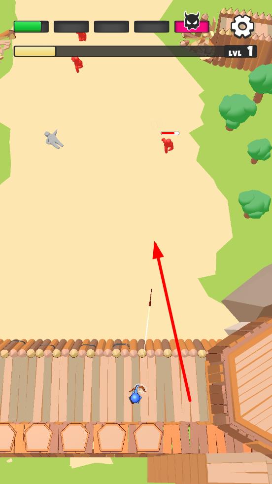 1、进入关卡,立足木墙后瞄准红灰敌人,滑动屏幕移动角色位置,优先射击血薄速快的敌人,避免其靠近城墙。