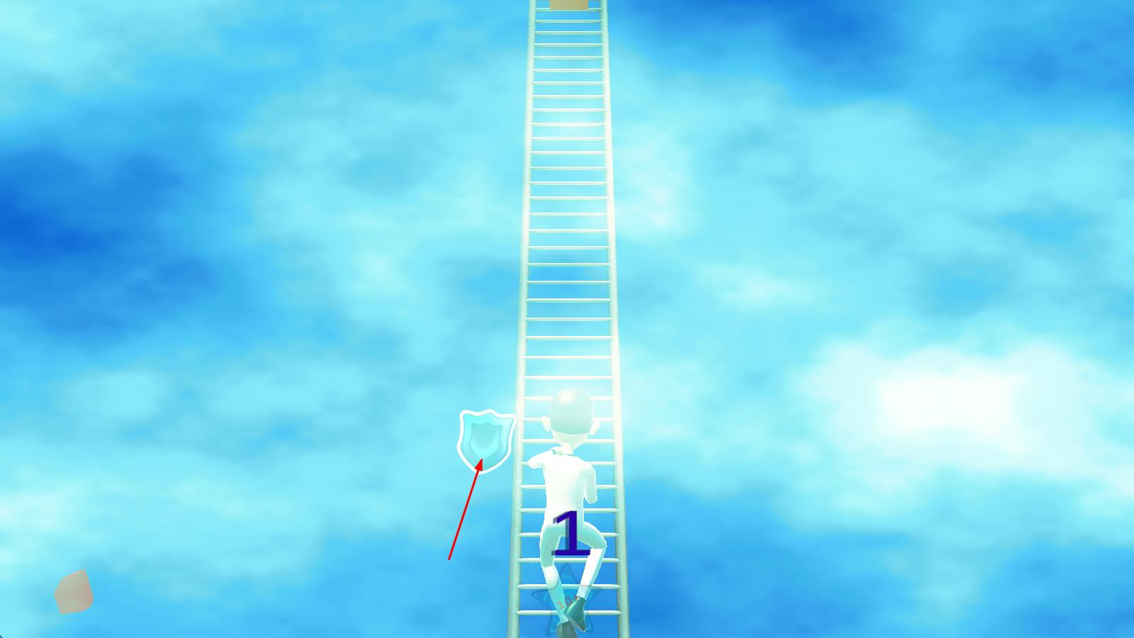 2、持续向上攀爬,若不慎撞上方块丢分,可尝试用头部触碰梯子一侧弥补;同时留意道具,吃掉后助力攀登,保持上升节奏。