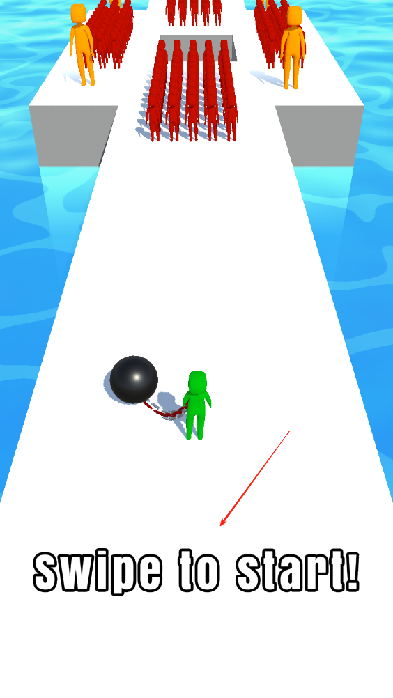 1、小人身上挂着大链球,转动小人带动身上的大链球转起来,即可攻击红色小人和大黄人。