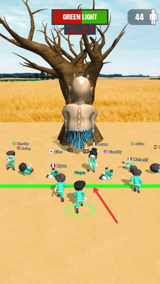 1、当界面显示GREEN LIGHT时,跟随游戏指引,沿着指定路线快速奔跑,在规定时间内尽可能地向目标前进。