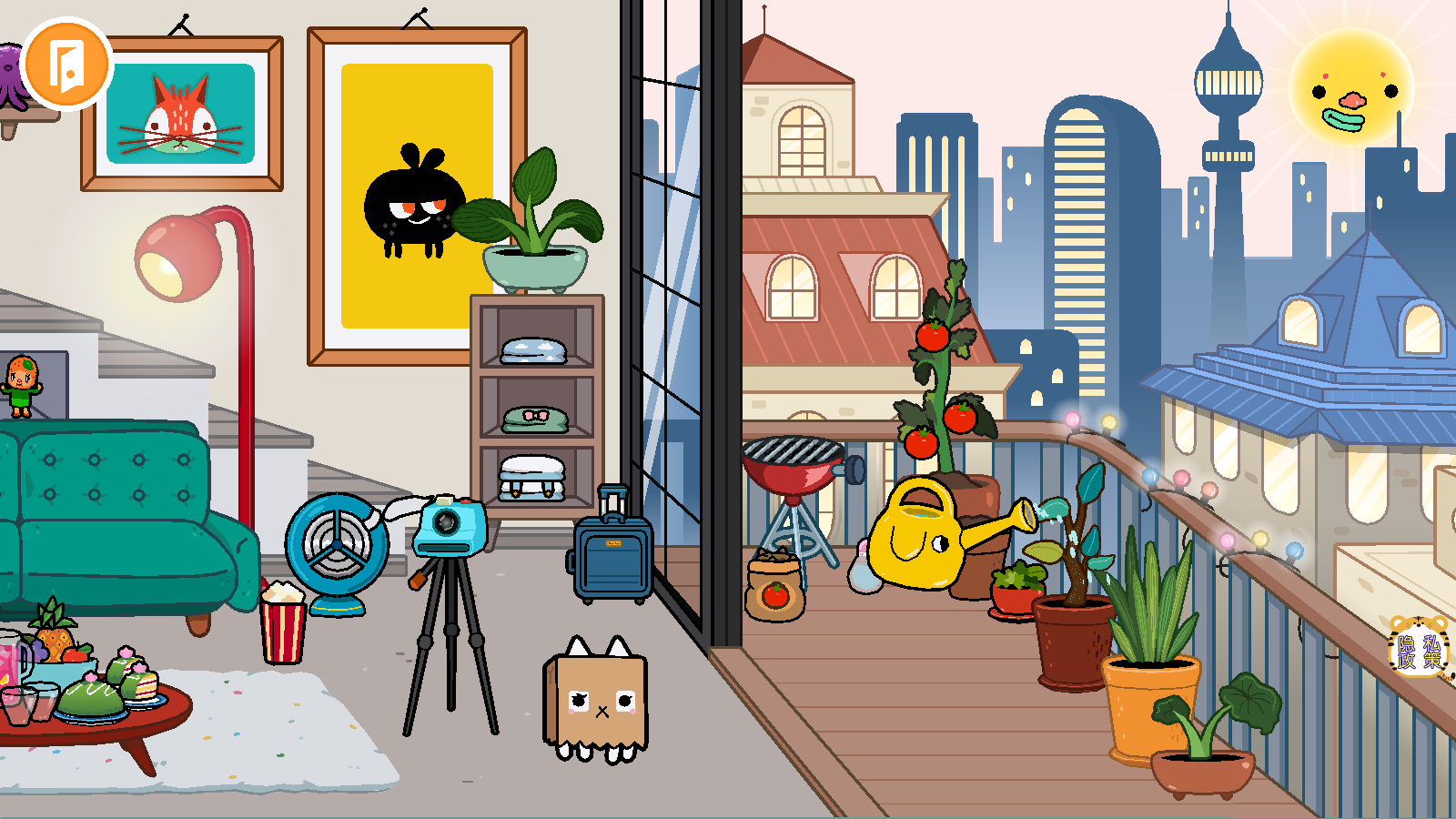 3、来到阳台场景,拖动黄色洒水壶,为盆栽浇水,完成互动任务,助力植物生长,解锁新场景互动内容,延续养成探索体验。