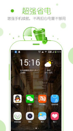 2.超强省电:增长手机续航时间,不用再担心手机没电了!