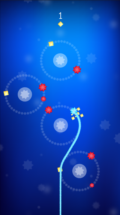 3、当成功在轨道上持续运动,避开所有红星并收集足够物品,获得高分后,即可挑战更高难度的轨道布局,刷新个人纪录。