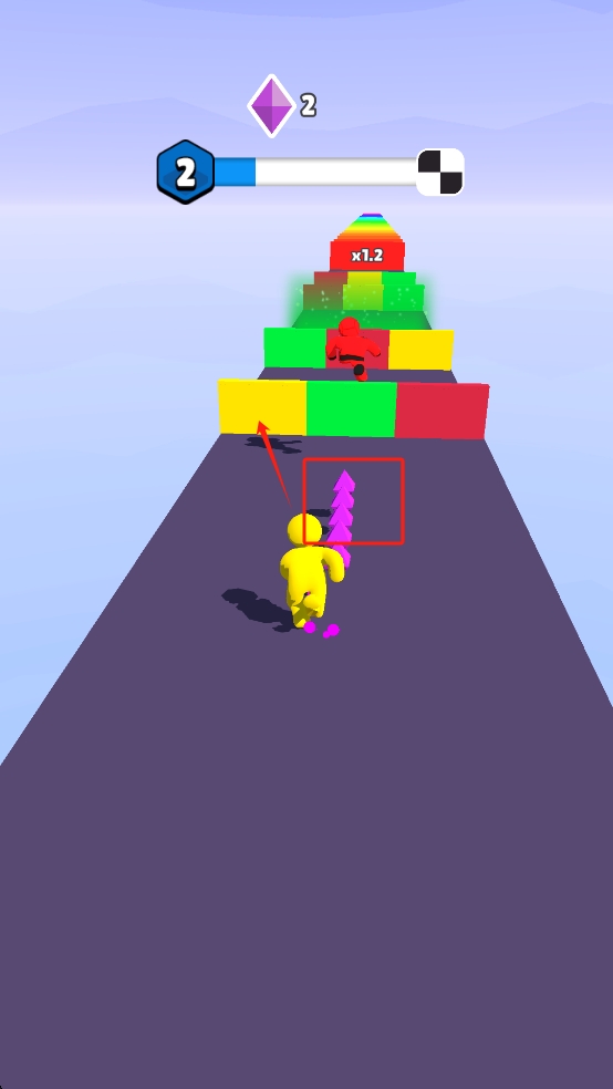 1、进入作品后我们操控角色沿跑道前进,遇到紫色道具堆时,靠近并收集,这些道具可助力后续战斗或提升能力。