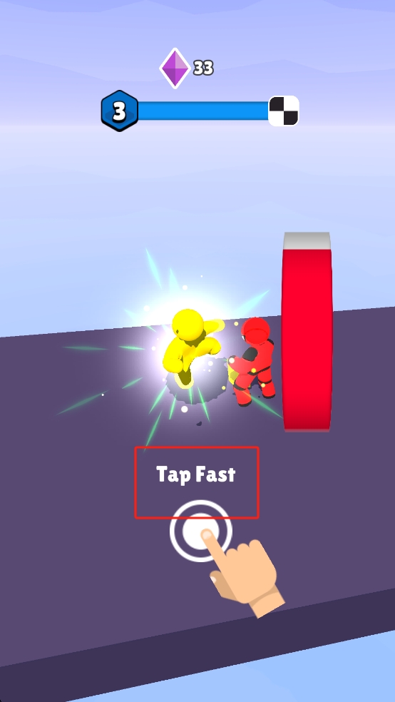 2、遭遇红色敌人时,屏幕下方出现提示,快速点击按钮,让我们的角色攻击敌人,点击频率越高,伤害输出越足。