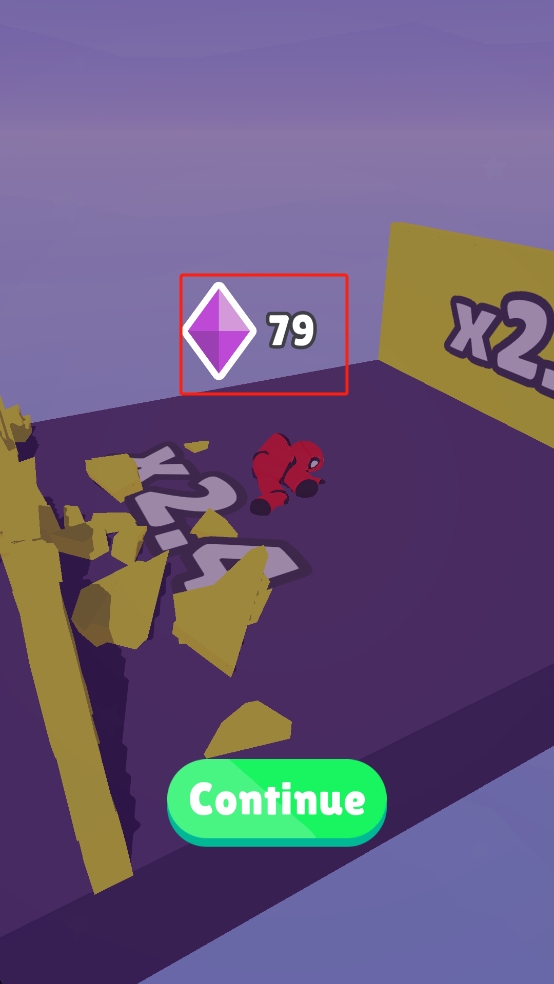 3、战斗结束后,获取79个紫色钻石,点击Continue按钮继续前行,利用钻石可在商店买道具、升级角色等。