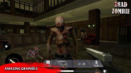 2、进入游戏场景,在昏暗的走廊中,集中注意力,瞄准僵尸进行射击,注意躲避僵尸攻击,合理利用弹药,关注生命值和弹药数量。
