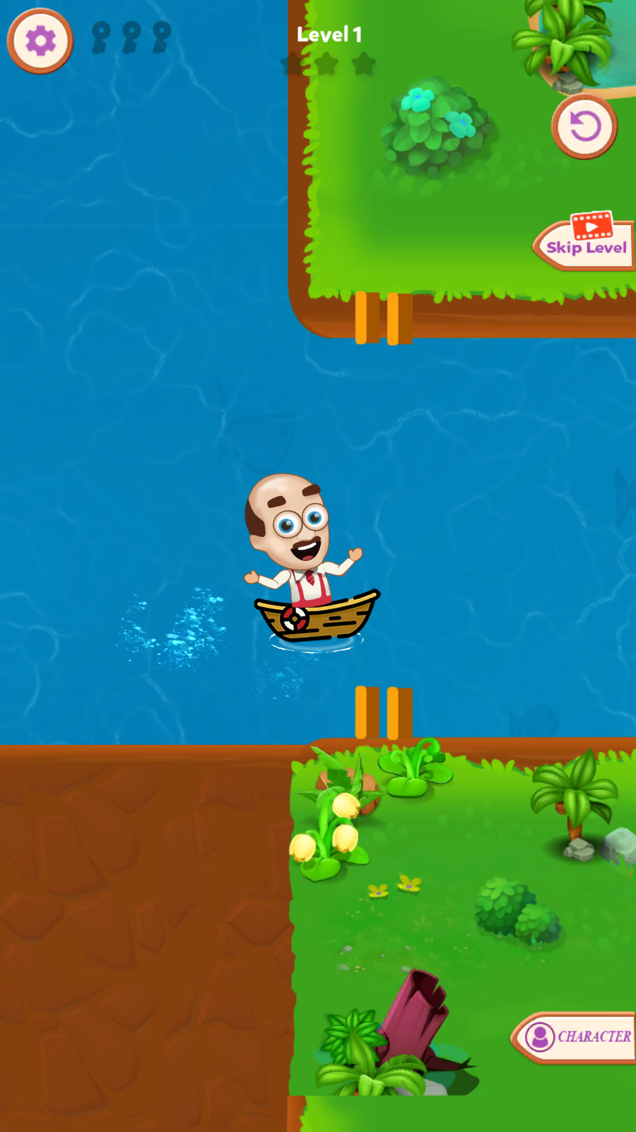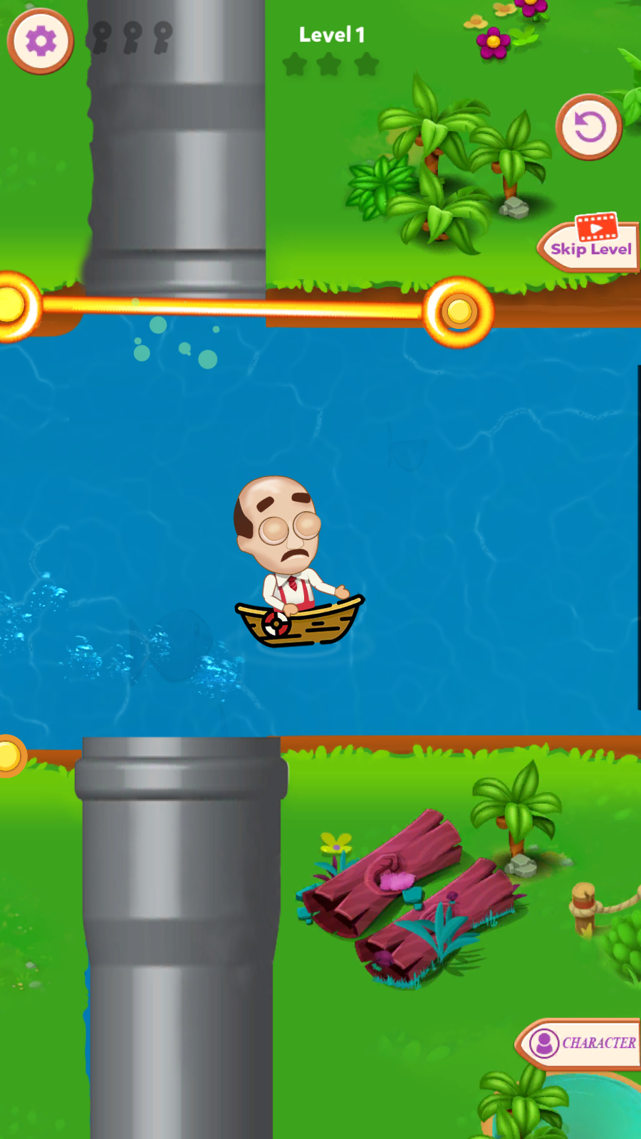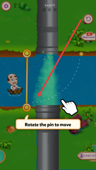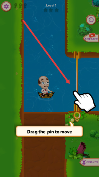 1、Level-1中,按照提示拖动右侧销子,调整水路通道,使船上角色获得移动路径,为后续闯关铺垫基础。