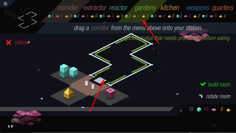 1、进入游戏,在太空站建设界面,根据提示从上方菜单中选择不同功能的房间。
