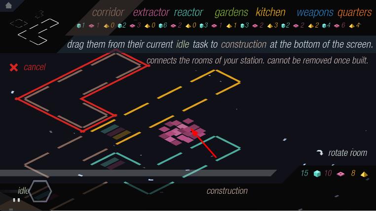 2、将选择的房间拖动到太空站的建设区域,合理规划布局,构建太空站的不同功能区域。