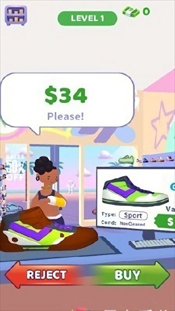 2、模拟真实经营流程:从鉴定、收购、处理到销售,完整还原了二手鞋店的经营环节,平衡收购成本与销售价格,通过优化处理流程提升利润,体验真实的经商逻辑。